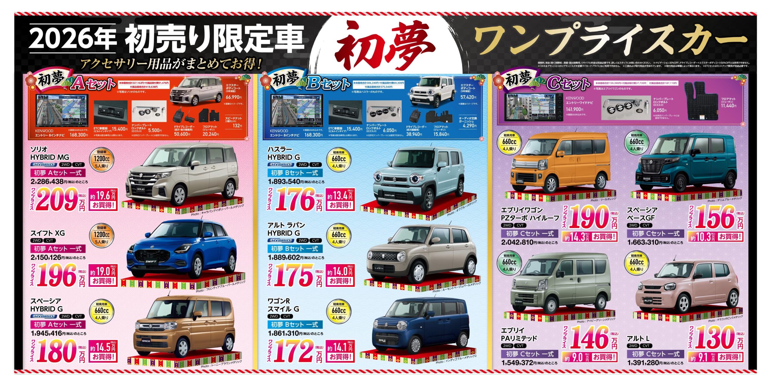 大変お買得な初夢ワンプライスカーをご用意しております。